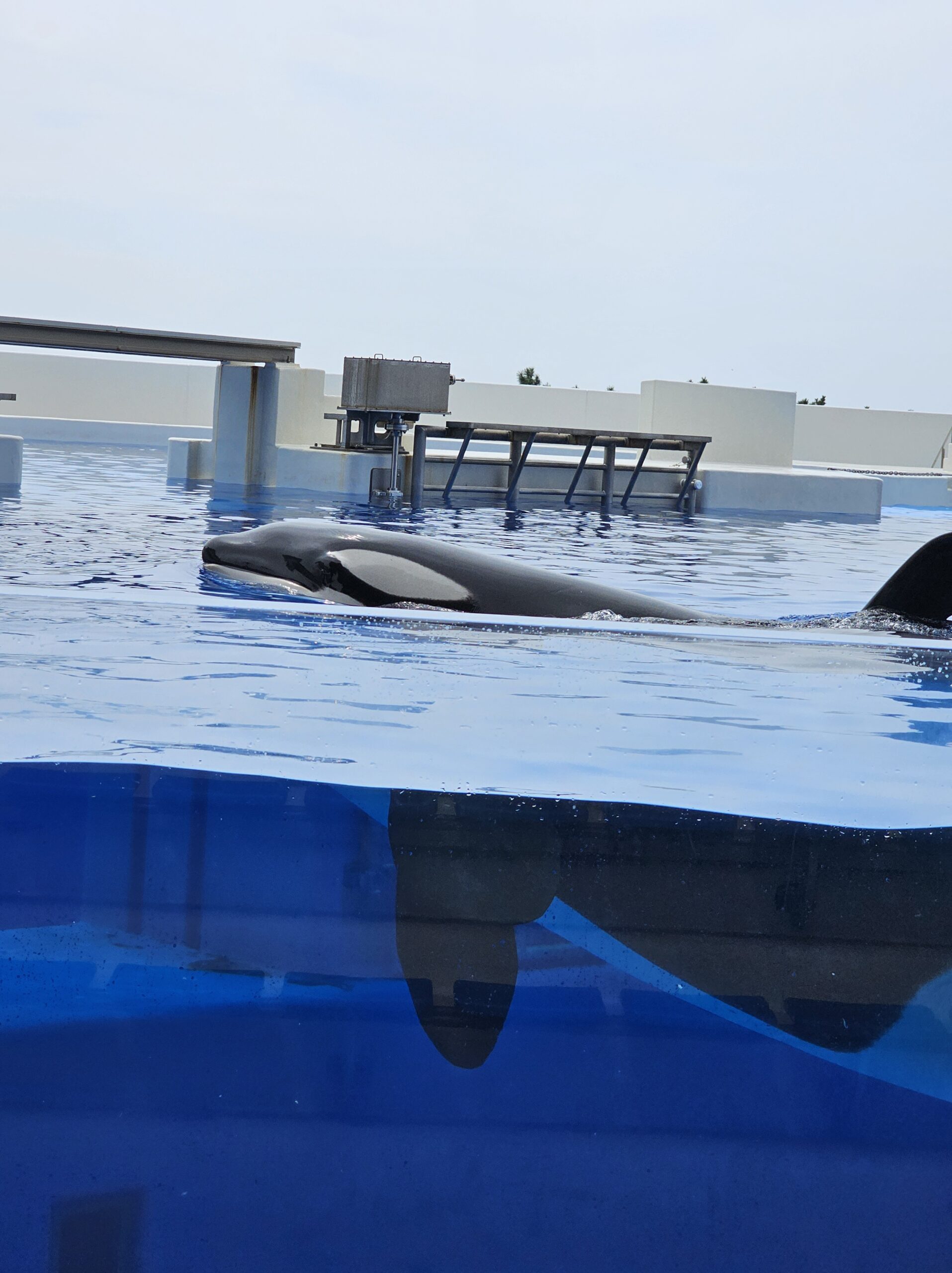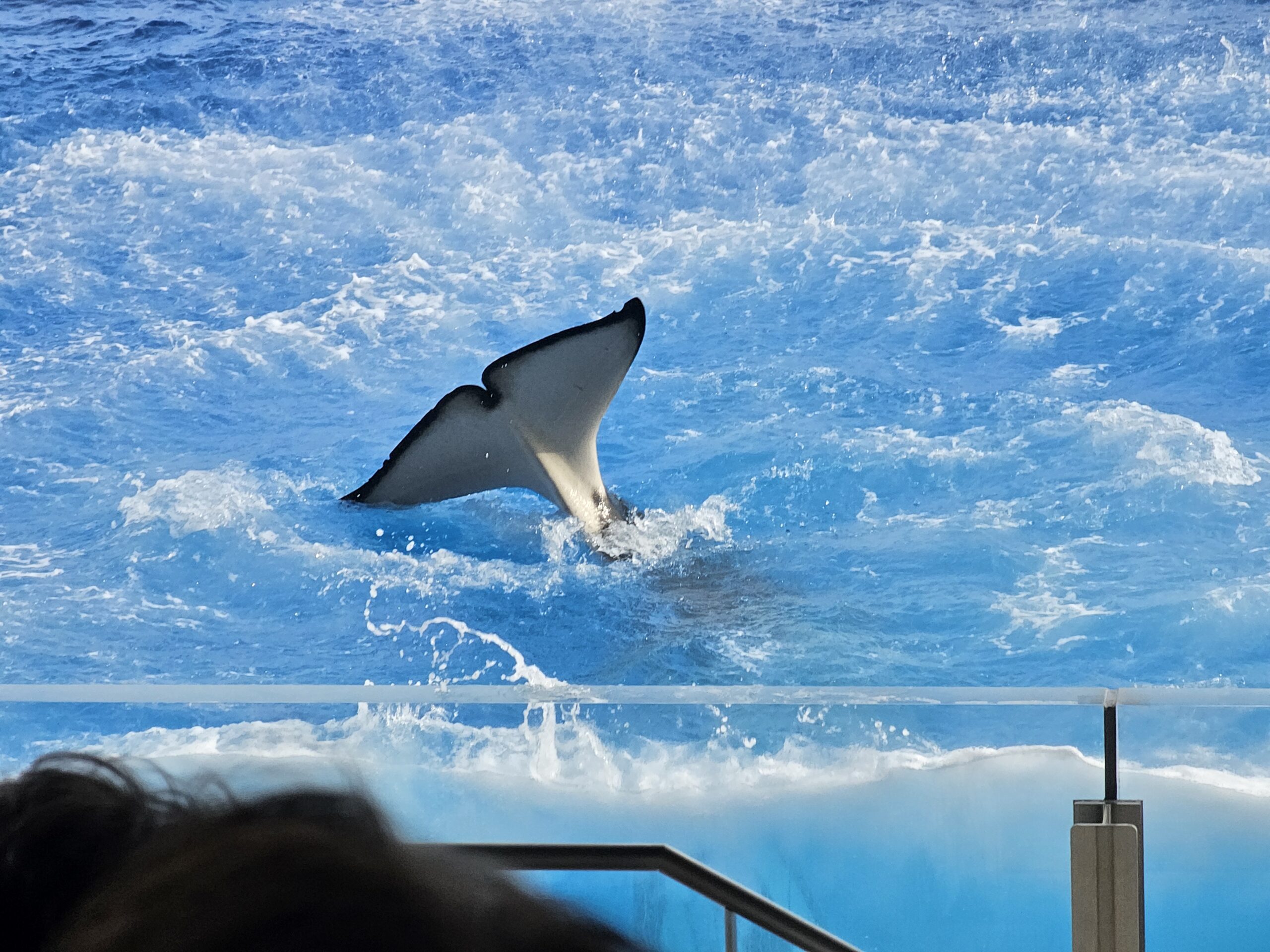 で、パフォーマンスが始まり、オルカの尾ひれ攻撃が始まります。