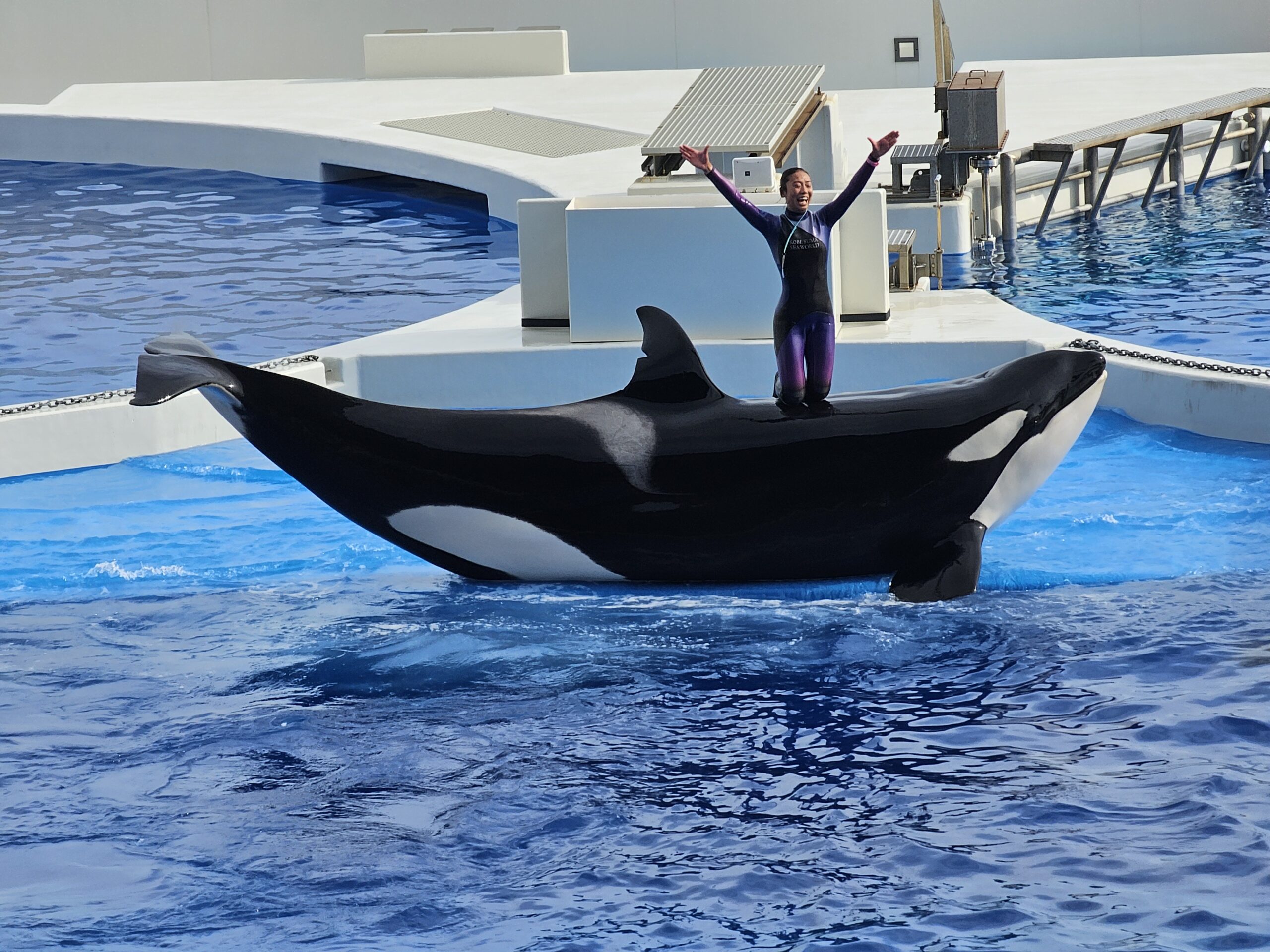 このシーワールドですが、イルカとオルカのパフォーマンスがあります。